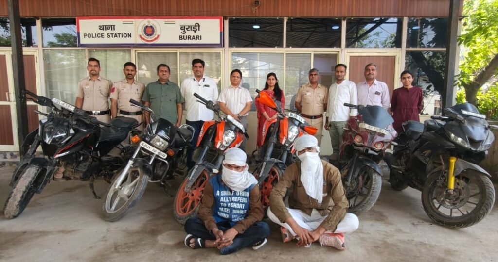नई दिल्ली/उमा सक्सेना/-  राजधानी दिल्ली में वाहन चोरी की वारदातों पर लगाम कसते हुए दिल्ली पुलिस ने एक बड़ी सफलता हासिल की है। उत्तरी जिले के बुराड़ी थाना पुलिस ने एक अंतरराज्यीय ऑटो-लिफ्टर गिरोह का भंडाफोड़ करते हुए दो शातिर चोरों को गिरफ्तार किया है। पुलिस ने इनके कब्जे से छह चोरी की मोटरसाइकिलें और एक अन्य चोरी की बाइक के अलग-अलग किए गए पुर्जे बरामद किए हैं। इस कार्रवाई से वाहन चोरी के कुल सात मामलों का खुलासा हुआ है।