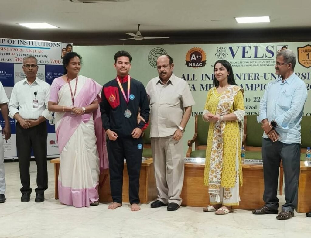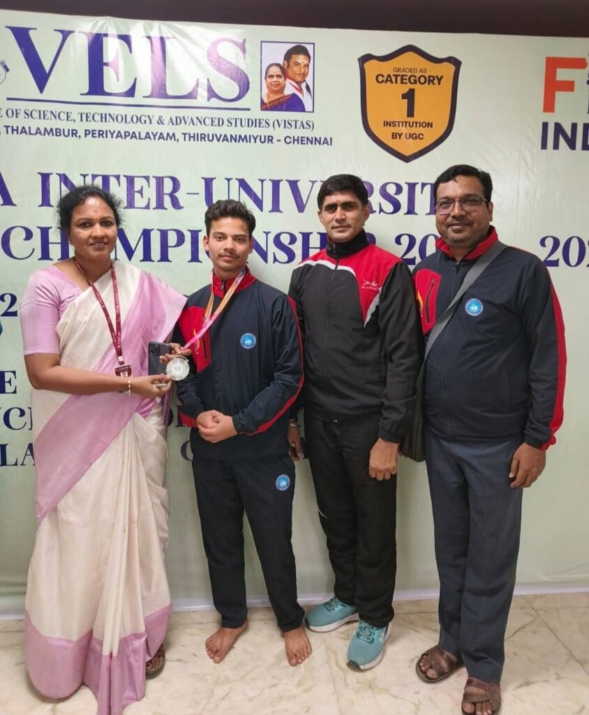 नई दिल्ली/उमा सक्सेना/- श्री लाल बहादुर शास्त्री राष्ट्रीय संस्कृत विश्वविद्यालय ने अखिल भारतीय विश्वविद्यालय योगासन प्रतियोगिता 2025–26 में उल्लेखनीय सफलता हासिल की है। तमिलनाडु के चेन्नई स्थित वेल्स विश्वविद्यालय में आयोजित इस प्रतिष्ठित प्रतियोगिता में विश्वविद्यालय के योग विज्ञान विभाग के बी.ए. योग के छात्र ओम केसरवानी ने उत्कृष्ट प्रदर्शन करते हुए द्वितीय स्थान प्राप्त किया और रजत पदक अपने नाम किया। इस उपलब्धि से न केवल छात्र बल्कि पूरे विश्वविद्यालय का नाम राष्ट्रीय स्तर पर रोशन हुआ है।