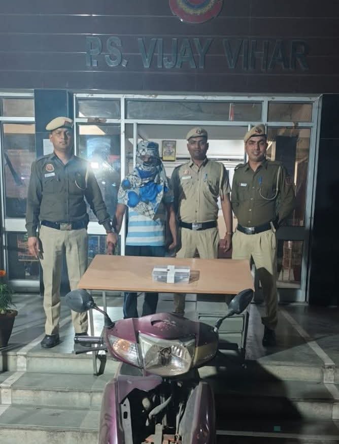 जानकारी के मुताबिक होली के त्योहार को देखते हुए क्षेत्र में सुरक्षा व्यवस्था कड़ी की गई थी और रोहिणी जिले के विभिन्न इलाकों में विशेष चेकिंग अभियान चलाया जा रहा था। इसी अभियान के तहत 3 मार्च 2026 की रात करीब साढ़े नौ बजे थाना विजय विहार की पुलिस टीम लाल क्वार्टर स्थित मदर डेयरी के पास पिकेट लगाकर वाहनों की जांच कर रही थी। इसी दौरान एक युवक टूटी हुई नंबर प्लेट वाली स्कूटी पर आता दिखाई दिया।