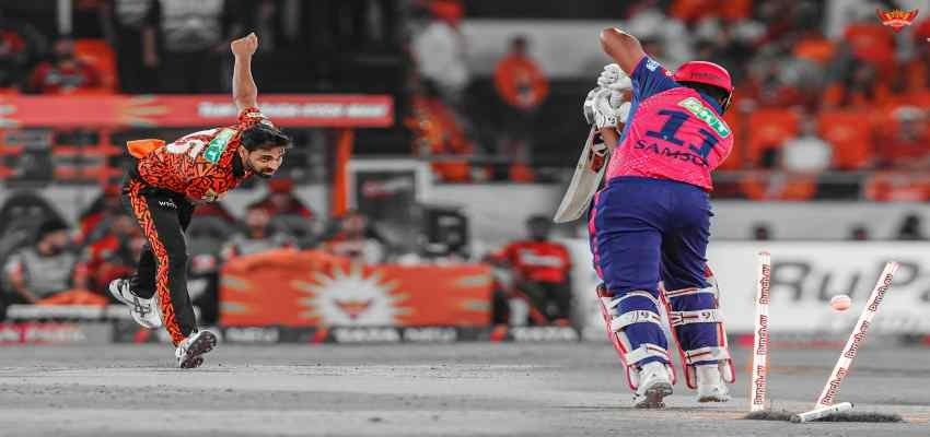राजस्थान रॉयल्स की टीम पर शुरूआत से ही भुवनेश्वर कुमार हावी दिखाई दिए। उन्होंने सालामी बल्लेबाज जोस बटलर और कप्तान संजू सैमसन को आउट करके रॉयल्स की टीम को बड़ा झटका दे दिया। इसके बाद आखिरी ओवर में जीत के लिए राजस्थान को 13 रन चाहिए थे। गेंदबाजी के लिए भुवनेश्वर कुमार के हाथों में गेंद सौंपी गई। भुवी ने पहली दो गेंदों पर सिर्फ तीन रन दिए। तीसरी गेंद पर पॉवेल ने चौका जड़ दिया। चौथी और पांचवी गेंदों पर 2-2 रन आए। जिसके बाद आखिरी गेंद पर जीत के लिए दो रन चाहिए थे। वहीं स्ट्राइक पर पॉवेल थे। भुवी ने आखिरी गेंद पर पॉवेल को एलबीडब्ल्यू कर दिया। साथ ही भुवनेश्वर कुमार ने हैदराबाद को जीत दिला दी।