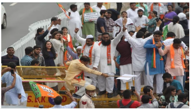नई दिल्ली/- दिल्ली भाजपा अध्यक्ष आदेश गुप्ता और एलओपी रामवीर सिंह बिधूड़ी के नेतृत्व में भारतीय जनता पार्टी की दिल्ली इकाई ने नई आबकारी नीति के खिलाफ नई दिल्ली मथुरा रोड स्थित उप मुख्यमंत्री मनीष सिसोदिया के घर के बाहर प्रदर्शन किया। इस दौरान बैरिकेड तोड़ने के कारण पुलिस ने आदेश गुप्ता सहित कई कार्यकर्ताओं को हिरासत में ले लिया।