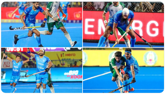 एशियाई चैम्पियंस ट्रॉफी में भारतीय टीम और पाकिस्तान के बीच बुधवार (9 अगस्त) को एक शानदार मैच खेला गया। यह मुकाबला एकतरफा रहा, जिसमें भारतीय टीम ने पाकिस्तान को बुरी तरह रौंदा और सेमीफाइनल में पहुंचने का सपना तोड़ दिया। मैच में शुरुआत से ही भारतीय टीम हावी रही और आखिर में यह मैच 4-0 से अपने नाम किया। भारतीय टीम के लिए पहला और दूसरा गोल हरमनप्रीत सिंह ने दागा। उन्होंने यह गोल 15 और 23वें मिनट में किए थे. पाकिस्तान पर यहीं से दबाव बन गया थां