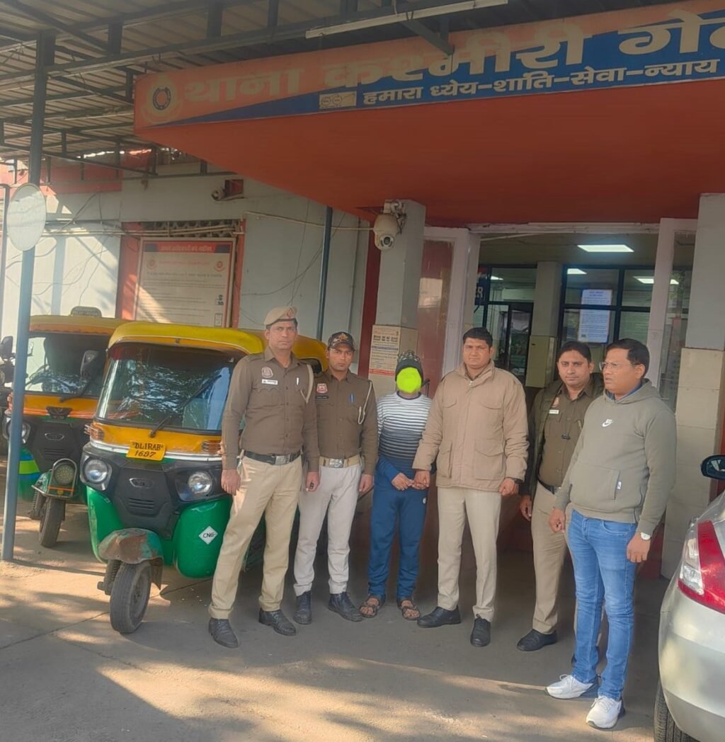 नई दिल्ली/सिमरन मोरया/-  कश्मीरी गेट थाना पुलिस ने ऑटो चोरी की वारदातों पर बड़ी कार्रवाई करते हुए एक शातिर ऑटो लिफ्टर को गिरफ्तार किया है। पुलिस ने आरोपी के कब्जे से तीन चोरी के थ्री-व्हीलर (TSR) बरामद किए हैं। आरोपी ऑटो-रिक्शा चोरी कर उन्हें तोड़-फोड़कर या मॉडिफाई कर स्पेयर पार्ट्स के रूप में बेच देता था।