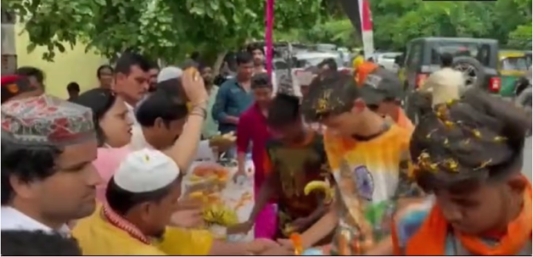 सावन के पवित्र महीने में कांवड़ियों की श्रद्धा का ऐसा सम्मान कर नोएडा के मुस्लिम समुदाय के लोगों ने भाईचारे का जीवंत उदाहरण प्रस्तुत किया है। नोएडा में सांप्रदायिक सद्भाव का परिचय देते हुए मुस्लिम समुदाय के युवाओं ने कांवड़ियों पर पुष्प वर्षा करके उनका स्वागत किया। उन्होंने इस दौरान कांवड़ियों को फल भी भेंट किए।