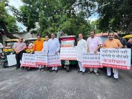 नई दिल्ली/- पिछले दिनों अपने गुजरात दौरे पर एक ऑटो में बैठकर ऑटो वाले घर जाकर खाना खाने वाले अरविंद केजरीवाल को वीरवार को भाजपा कार्यकर्ता उनके घर पर ऑटो भेंट करने पंहुचें। भाजपा नेताओं ने कहा कि अरविंद केजरीवाल अपने पैंतरों से जनता को बेवकूफ बना रहे हैं। उन्होने केजरीवाल की पोल खोलते हुए कहा कि दिल्ली में 27 कारों के काफिले में चलते है। गुजरात जाने के लिए पंजाब सरकार के विमान व 50 लाख खर्च करते है। फिर गुजरात में ऑटो की सवारी करते है। भला इससे बड़ा पैंतरेबाज कौन होगा। इतना ही नही जब सुरक्षा के नाम पर गुजरात पुलिस उन्हे रोकती है तो उल्टा पुलिस को भला बुरा कहते है। तो फिर दिल्ली में भी ऑटो में क्यों नही चलते। ऐसा क्या है यह तो उनका अपना राज्य है। उन्होंने कहा, “अगर अरविंद केजरीवाल को ऑटो से बहुत प्यार है तो हम सभी विधायक उन्हें ऑटो रिक्शा भेंट करने आए हैं,वो घर से बाहर आएं“