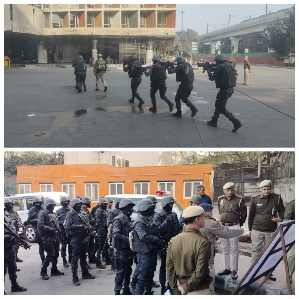 07 जनवरी 2026 को दिल्ली यूनिवर्सिटी मेट्रो स्टेशन गेट नंबर-4 पर आतंकी हमले की स्थिति को दर्शाते हुए अभ्यास किया गया। सूचना के अनुसार तीन आतंकियों ने हमला कर एक व्यक्ति को घायल कर दिया और दो लोगों को बंधक बना लिया। मौके पर पहुंची स्पेशल सेल और स्वाट टीम ने संयुक्त कार्रवाई कर आतंकियों को निष्क्रिय किया, घायलों को अस्पताल पहुंचाया और बंधकों को सुरक्षित बाहर निकाला।