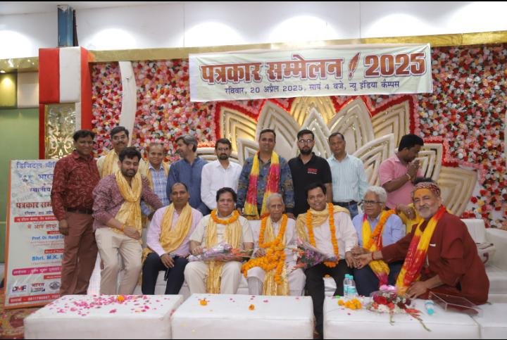 गाजियाबाद/यूपी/शिव कुमार यादव/- राजधानी दिल्ली से सटे गाजियाबाद के भोपुरा में डिजिटल मीडिया फेडरेशन व भारत न्यूज के संयुक्त तत्वाधान में न्यू इंडिया कैंपस परिसर में पत्रकार सम्मेलन 2025 का आयोजन किया गया। इस पत्रकार सम्मेलन के आयोजन का मुख्य उद्देश्य स्थानीय पत्रकारों को मुख्य धारा में लाने व उनके आर्थिक और सामाजिक उत्थान संबंधी कार्य करने के लिए एक रोड मैप को तैयार करना था।
