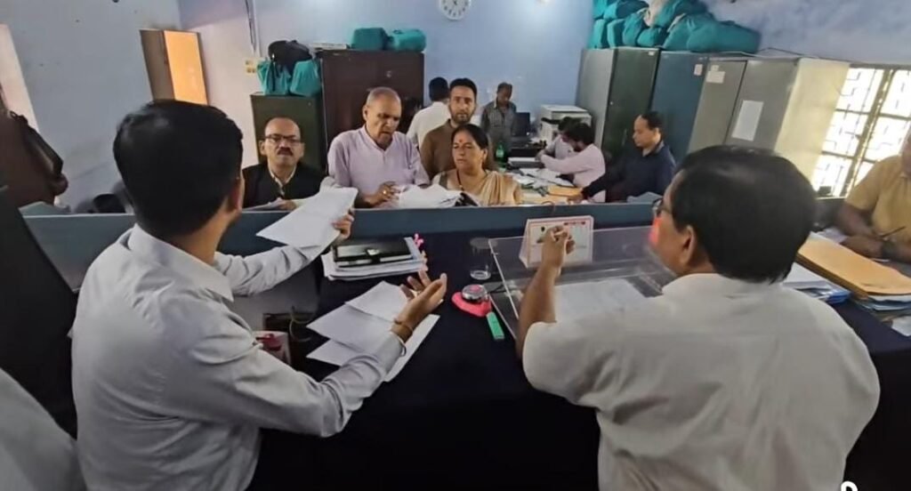 शुक्रवार को जिलाधिकारी संदीप तिवारी ने कलेक्ट्रेट परिसर में बनाए गए नामांकन केंद्र का स्थलीय निरीक्षण किया। उन्होंने नाम निर्देशन पत्रों की बिक्री काउंटर, नाम निर्देशन पत्र प्राप्त करने हेतु काउंटर, एआरओ एवं सम्बद्ध कार्मिकों की व्यवस्था, नो-ड्यूज प्रमाणपत्र काउंटर, मतदाता सूची वितरण व्यवस्था, मतदान दलों की रवानगी एवं वापसी स्थल, स्ट्रॉन्ग रूम, डिस्पैच कक्ष, तथा मतगणना स्थल आदि का बारीकी से जायजा लिया।