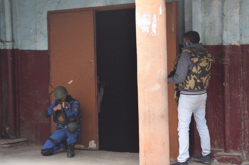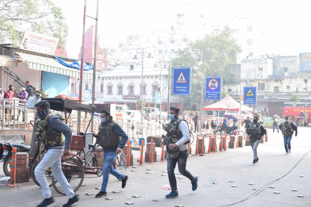 नजफगढ़ मैट्रो न्यूज/नार्थ जिला/नई दिल्ली/शिव कुमार यादव/भावना शर्मा/- दिल्ली के चांदनी चौक इलाके में अचानक तीन आतंकवादियों ने साईकिल मार्केट में हमला कर 3 लोगों को बंधक बना लिया। इस खबर से पूरे इलाके में हड़कंप मच गया। लेकिन नॉर्थ जिला पुलिस ने पूरी संयमता से कार्यवाही करते हुए दो आतंकवादियों को ढेर कर दिया और एक आतंकवादी को पकड़ लिया गया। साथ ही तीनों बंधकों को सुरक्षित बचा लिया गया। साइकिल मार्केट में अचानक भारी संख्या में पुलिस बल देखकर स्थानीय लोगों में अफरा-तफरी मच गई लेकिन जब लोगों को पता चला कि पुलिस गणतंत्र दिवस पर अपनी सुरक्षा की तैयारियों को जांचने के लिए मॉक ड्रिल कर रही है तब लोगों की जान में जान आई और लोगों ने पुलिस की पूरी कार्यवाही को इतमिनान से देखा। हालांकि पुलिस की इस कार्यवाही में जिला पुलिस, कैट, फायर, डीडीएमए, विशेष सेल, स्वाट, बीडीटी, डीसीडी, एमपीवी और प्राथमिक दिल्ली पुलिस की काउंटर असॉल्ट टीमों ने भाग लिया और पूरी मुस्तैदी से अपना काम पूर्ण किया। पूरी मॉक ड्रिल की कार्यवाही डीसीपी नॉर्थ सागर सिंह कल्सी की देखरेख में की गई।