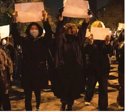 प्रदर्शनकारी असंतोष जताते हुए खाली सफेद कागज (ब्लैंक व्हाइट पेपर) लेकर प्रोटेस्ट कर रहे हैं। बीजिंग में भी स्टूडेंट्स ब्लैंक व्हाइट पेपर लेकर साइलेंट प्रोटेस्ट करते दिखे। ये एक तरह से सेंसरशिप या गिरफ्तारी से बचने के तौर पर किया जाने वाला विरोध है।