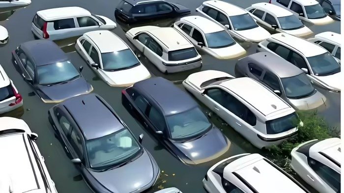 -करीब 300 नई गाड़ियां जलमग्न, कंपनी को भारी नुकसान की आशंका