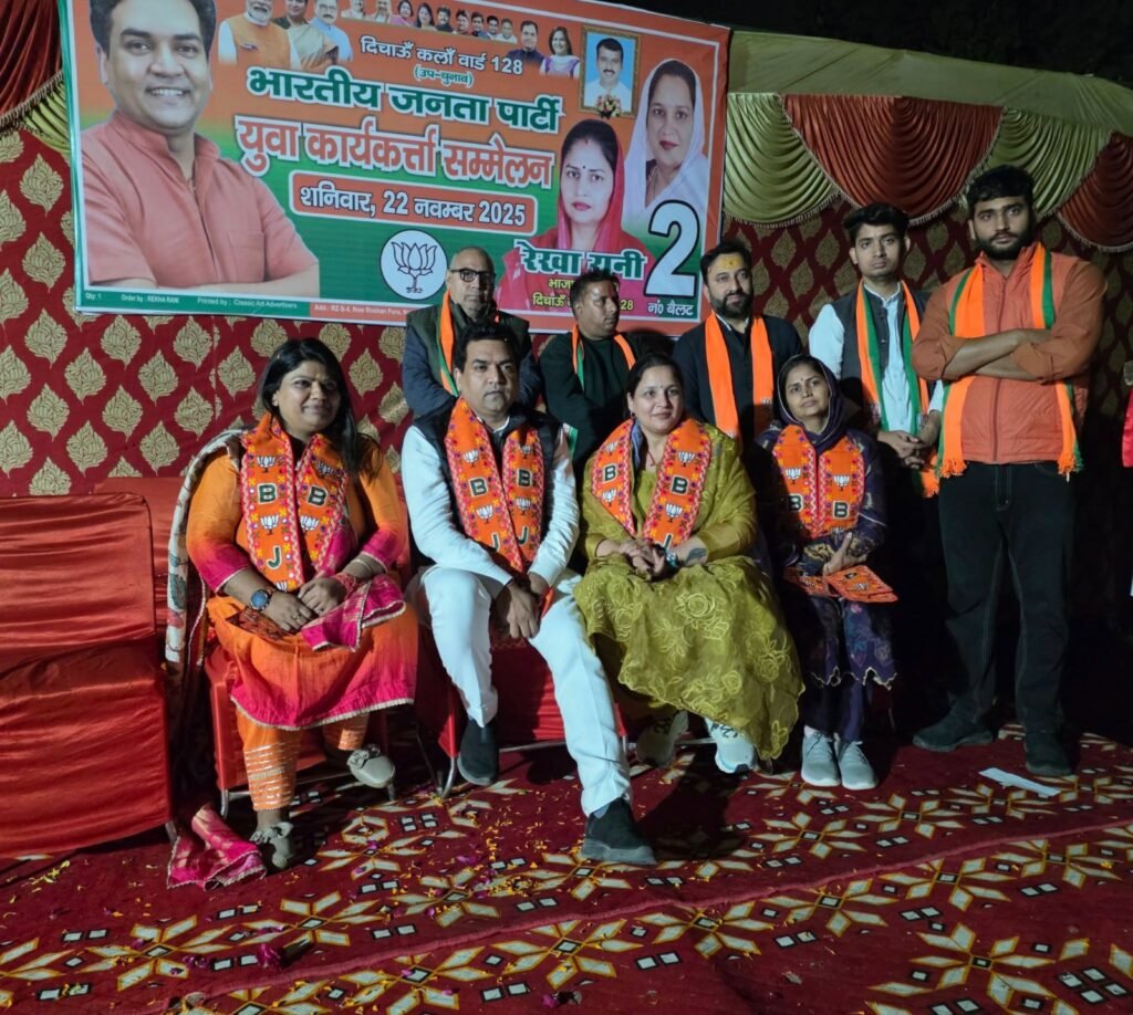 नई दिल्ली/दिचाऊं कलां/उमा सक्सेना/- दिचाऊं कलां वार्ड–128 में होने वाले MCD उपचुनाव को लेकर सेठी फ़ार्म में भाजपा की ओर से आयोजित ‘युवा सम्मेलन’ में युवाओं का जोश देखने लायक था। यह कार्यक्रम भाजपा उम्मीदवार रेखा इंदरजीत शौकीन के समर्थन में रखा गया था, जिसमें बड़ी संख्या में युवा जुटे।