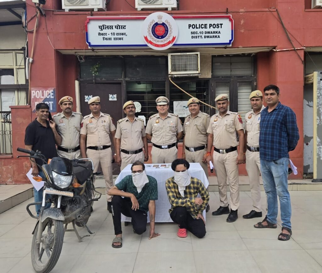 नई दिल्ली/सिमरन मोरया/- दिल्ली के द्वारका ज़िला पुलिस ने एक और बड़ी सफलता हासिल करते हुए दो कुख्यात झपटमारों को महज़ ढाई घंटे की कार्रवाई में गिरफ्तार कर लिया। दोनों अपराधी हत्या, डकैती, लूट, शस्त्र अधिनियम और झपटमारी जैसे गंभीर अपराधों में वांटेड थे और उन पर दिल्ली के 7 जिलों में लगभग 30-30 आपराधिक केस दर्ज थे।