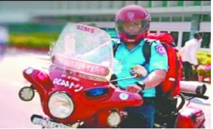 नई दिल्ली/- अखिल भारतीय आयुर्विज्ञान संस्थान (एम्स) दिल्ली से पांच किलोमीटर के दायरे में यदि किसी को दिल का दौरा पड़ता है तो एम्स की बाइक एंबुलेंस तुरंत मदद के लिए मौके पर पहुंच जाएगी। दिल के मरीजों के लिए एम्स ने बृहस्पतिवार को बाइक एंबुलेंस की संख्या को दोगुना कर दिया है। एम्स की इस निशुल्क सुविधा के तहत अभी तक 800 लोगों की जान बचाई जा चुकी है। संख्या बढ़ने के बाद सुविधा में और विस्तार होगा।