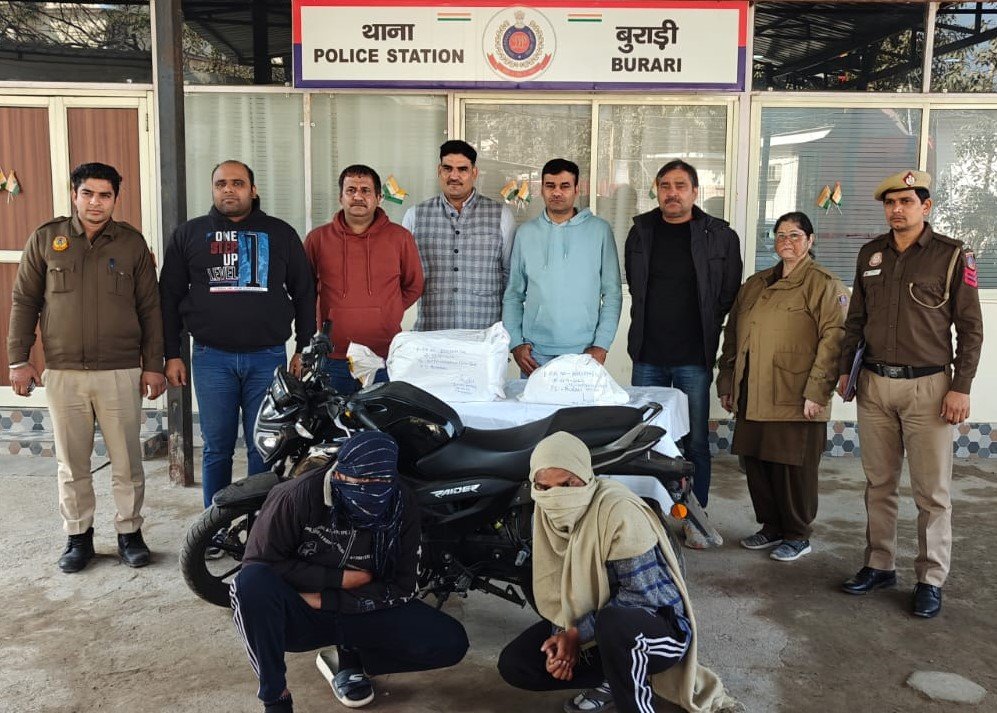 नई दिल्ली/उमा सक्सेना/- दिल्ली के बुराड़ी थाना क्षेत्र में दिन के समय हुई चोरी की वारदात को पुलिस ने महज कुछ ही दिनों में सुलझाते हुए दो कुख्यात अपराधियों को गिरफ्तार कर लिया है। सतर्कता और तेज कार्रवाई का परिचय देते हुए बुराड़ी पुलिस की टीम ने सीसीटीवी फुटेज और स्थानीय सूचना तंत्र की मदद से इस चोरी की गुत्थी को सुलझाया। आरोपियों के पास से चोरी गया सामान, वारदात में प्रयुक्त औजार और बाइक भी बरामद कर ली गई है।