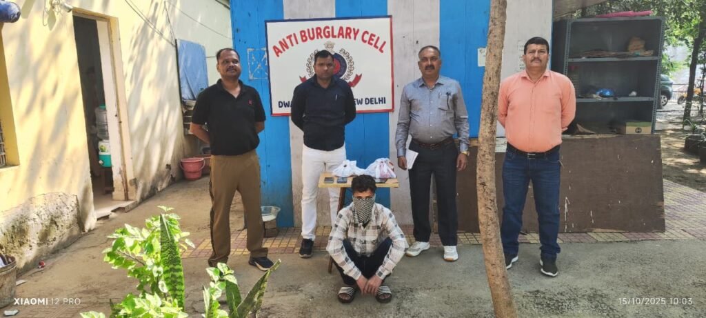 नई दिल्ली/द्वारका/उमा सक्सेना/- द्वारका जिला पुलिस की एंटी-बर्गलरी सेल ने एक बड़ी कार्रवाई करते हुए एक सक्रिय और शातिर चोर को गिरफ्तार किया है। आरोपी की पहचान शरिफ उर्फ सलीम (24 वर्ष) पुत्र नेक मोहम्मद, निवासी रानाजी एन्क्लेव, नजफगढ़, दिल्ली के रूप में हुई है। आरोपी के कब्जे से पांच चोरी किए गए मोबाइल फोन, दो वाटर मीटर और कई सैनेटरी आइटम्स बरामद किए गए हैं।