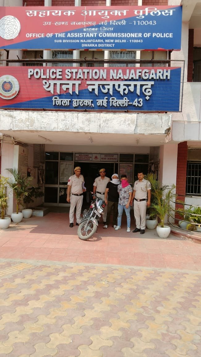इस संबंध में डीसीपी द्वारका अंकित सिंह ने बताया कि नजफगढ़ में बढ़ती वाहन चोरी की घटनाओं पर अंकुश लगाने के लिए नजफगढ़ एसएचओ सुभाष चंद व एसीपी नजफगढ़ महेश नारायण ने एएसआई सुभाष सिंह, एचसी हवा सिंह, एचसी हरेंद्र, एचसी अनिल कुमार और कांस्टेबल ऋतुराज की टीम एक टीम का गठन किया और वाहन चोरों को पकड़ने के आदेश दिए। टीम ने इंस्पेक्टर के नेतृत्व में कार्यवाही करते हुए नजफगढ़ थाना क्षेत्र में पिकेट जांच बढ़ा दी। इसी दौरान पिकेट जांच के दौरान दो अज्ञात लड़के बिना हेलमेट के बाइक पर छावला स्टैंड से ढांसा मेट्रो स्टेशन की ओर आ रहे थे। उन्हें अपनी बाइक रोकने के लिए कहा गया, लेकिन उन्होंने अपनी बाइक मोड़ ली और छावला स्टैंड की ओर जाने लगे, लेकिन कर्मचारियों ने सतर्कता से, उनका पीछा किया और उन्हें पकड़ लिया गया।