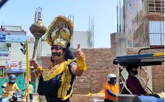 नजफगढ़ मैट्रो न्यूज/नजफगढ़/शिव कुमार यादव/भावना शर्मा/- रविवार को नजफगढ़ की सड़कों पर यमराज जी घूमते दिखाई दिये। जिसे देखकर बच्चों में काफी कौतुहल देखा गया तो महिलाऐं यमराज के साथ सैल्फी खिचवाती दिखाई दी। हालांकि यमराज सड़कों पर घूम-घूमकर एक ही संदेश दे रहे थे कि संभल जाओ वर्ना मै आ जाऊंगा। साथ ही यमराज जी लोगों को सड़क पर सुरक्षित रहने के लिए टू-व्हीलर पर हैलमैट पहनने व कार में है तो सीट बैल्ट लगाने का संदेश दे रहे थे।