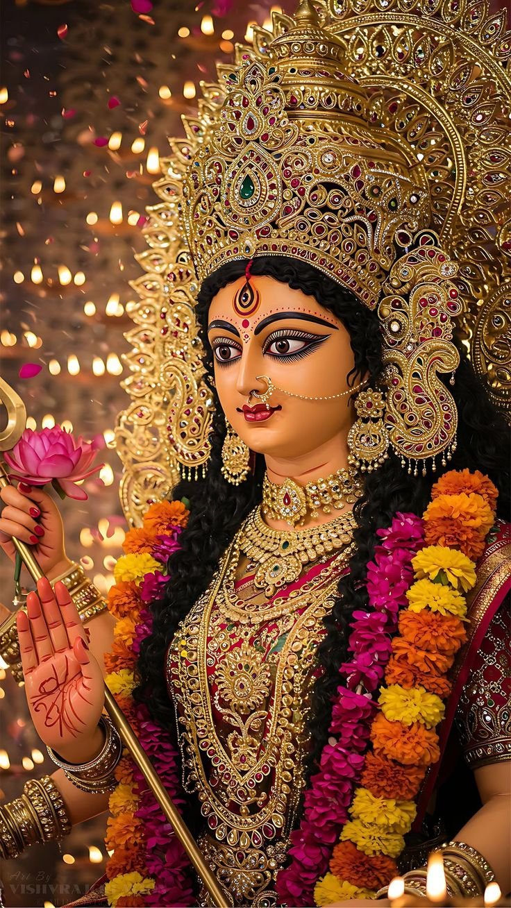 • नौ दिनों तक मां दुर्गा के नौ रूपों की पूजा होती है — शैलपुत्री, ब्रह्मचारिणी, चंद्रघंटा, कूष्मांडा, स्कंदमाता, कात्यायनी, कालरात्रि, महागौरी और सिद्धिदात्री।