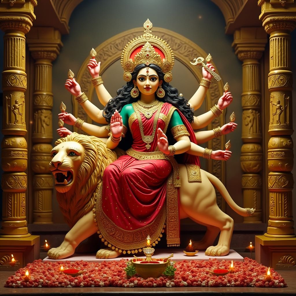 🔸 मां की प्रतिमा या चित्र की स्थापना करें: