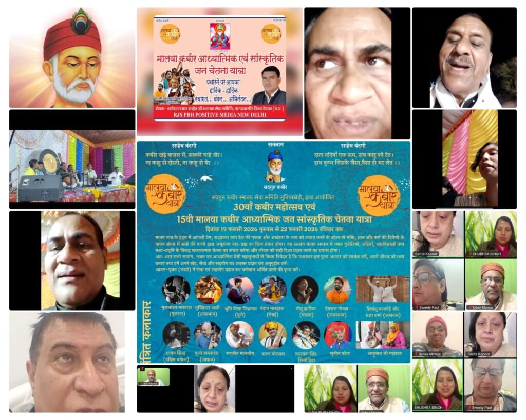 मध्य प्रदेश/उमा सक्सेना/- मध्य प्रदेश के देवास जिले स्थित पांदा जागीर में आयोजित मालवा कबीर महोत्सव और आध्यात्मिक जनचेतना यात्रा ने इस वर्ष राष्ट्रीय ही नहीं बल्कि अंतरराष्ट्रीय स्तर पर भी अपनी सशक्त उपस्थिति दर्ज कराई। इस सांस्कृतिक और आध्यात्मिक आयोजन को वैश्विक मंच से जोड़ने में आरजेएस पॉजिटिव मीडिया की अहम भूमिका रही, जिसने भौतिक और वर्चुअल माध्यमों को जोड़ते हुए कार्यक्रम को व्यापक दर्शक वर्ग तक पहुंचाया। विभिन्न राज्यों और देशों से जुड़े दर्शकों ने वेबिनार के माध्यम से कबीर भजनों और विचारों का रसास्वादन किया।