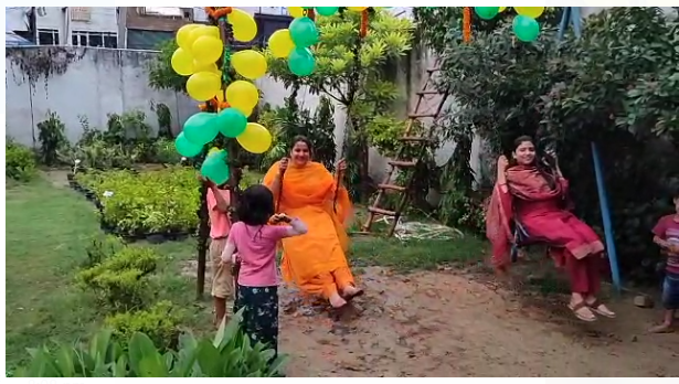 तीज के उपलक्ष्य में स्वीट होम मायका में मनाये गये तीजोत्सव पर बच्चियों ने सांस्कृतिक प्रोग्राम पेश कर दीदी नीलम कृष्ण पहलवान का स्वागत किया और उनके साथ झूला झूलकर तीजो उत्सव मनाया। बता दे कि उतरते सावन की तृतीया को हरियाली तीज का त्यौहार मनाया जाता है।