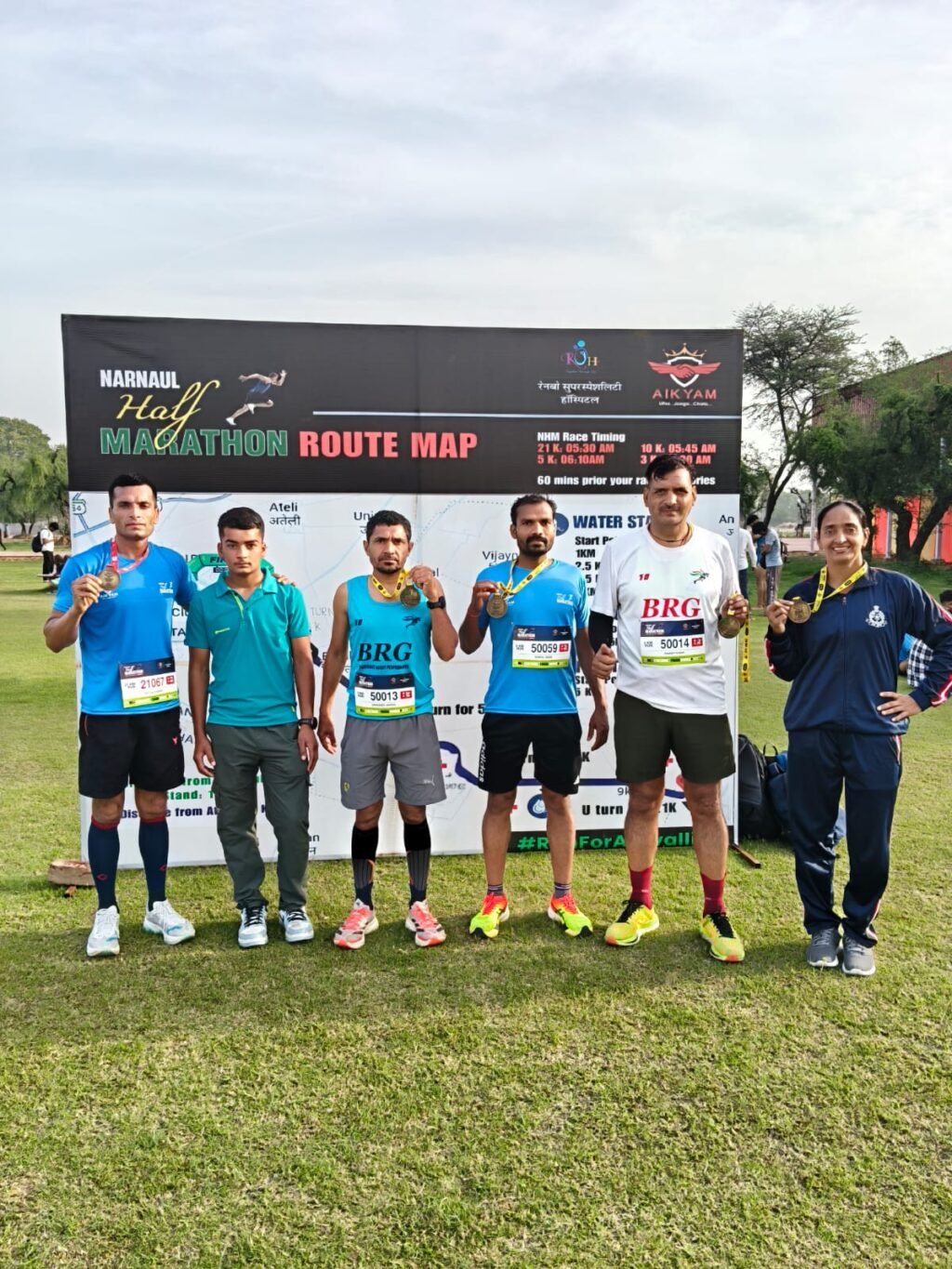 नारनौल में आयोजित हाफ मैराथन में भी BRG के धावकों ने अलग-अलग आयु वर्गों में उत्कृष्ट प्रदर्शन किया। 31-40 वर्ष वर्ग में सोनपाल सिंह ने पहला स्थान हासिल किया, जबकि 41-50 वर्ष वर्ग में नरेंद्र जांगड़ा विजेता बने। महिला वर्ग में सरिका यादव ने शानदार प्रदर्शन करते हुए शीर्ष स्थान प्राप्त किया। वहीं वरिष्ठ वर्ग में राजेश कुमार ने भी जीत दर्ज कर टीम की सफलता में योगदान दिया।