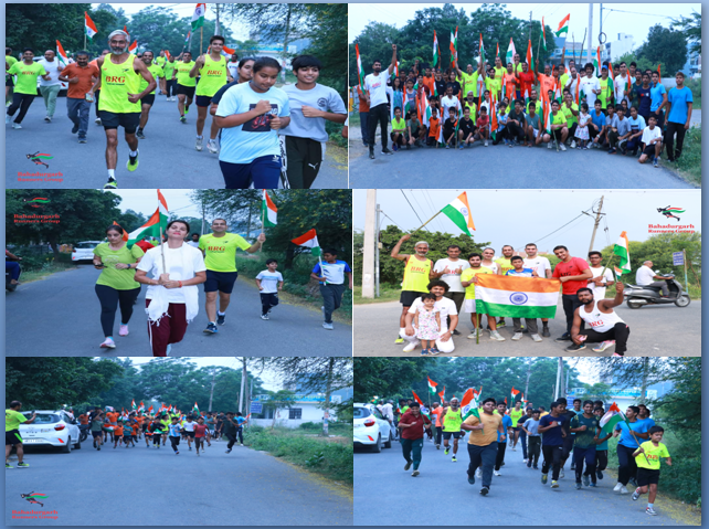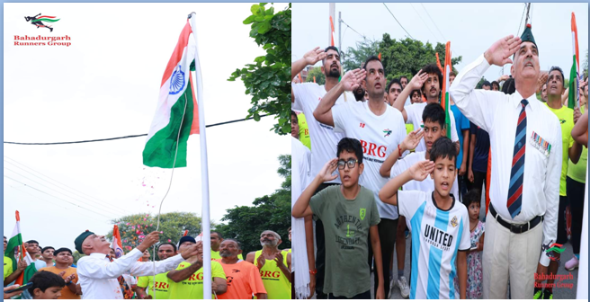 नजफगढ़ मैट्रो न्यूज/बहादुरगढ़/भावना शर्मा/- लोगों की सेहत व देश की एकता, अखंडता व भ्रष्टाचार मुक्त भारत की शपथ के साथ बहादुरगढ रर्नस ग्रुप (बी आर जी ग्रुप) ने बड़ी धूमधाम के साथ 77वां स्वतंत्रता दिवस मनाया। इस बार स्वतंत्रता दिवस को नये अंदाज में तिरंगे को सलामी देने के लिए बीआरजी ग्रुप के धावकों ने बीआरजी प्वांइट सेक्टर-9 में 77 धावकों ने 15 किलोमीटर की दौड़ लगाई और 15 साकलिस्ट ने 77 किलोमीटर साइकिल चलाकर तिरंगे को सलामी दी।