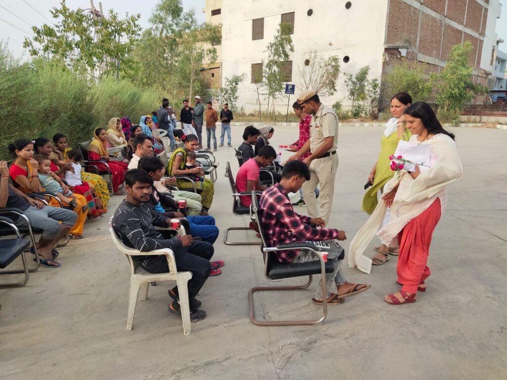 नजफगढ़ मैट्रो न्यूज/बहादुरगढ़/शिव कुमार यादव/- झज्जर पुलिस द्वारा नशा के विरुद्ध चलाए जा रहे अभियान के तहत महिला थाना प्रबंधक बहादुरगढ़ की टीम द्वारा आम लोगों को फूल बांट कर नशा छोड़ने के प्रति जागरूक किया गया। एसपी श्री वसीम अकरम के दिशा निर्देशानुसार नशा के विरुद्ध चलाए गए विशेष जागरूकता अभियान के तहत रविवार को महिला थाना बहादुरगढ़ के प्रांगण में आम लोगों को नशे के दुष्प्रभावों की विस्तृत जानकारी देते हुए जागरूक किया गया।