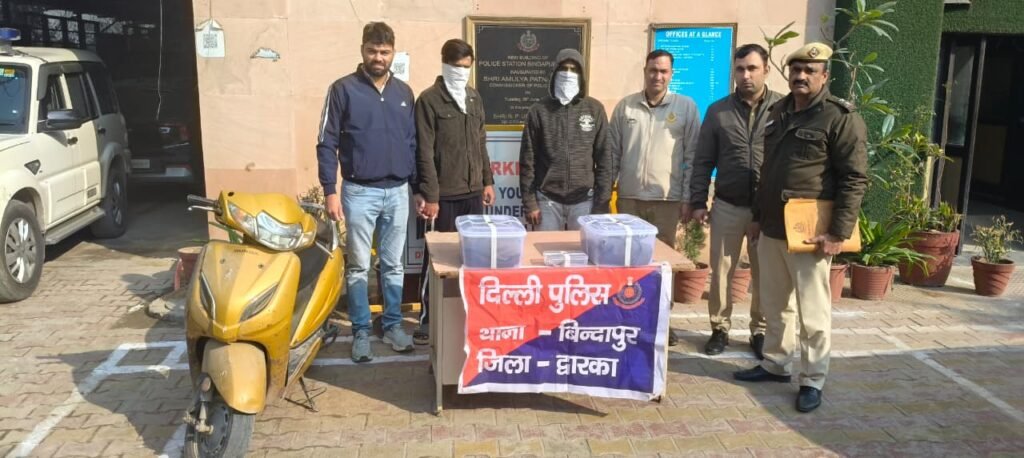 नई दिल्ली/सिमरन मोरया/- द्वारका जिले के बिंदापुर थाना पुलिस की विशेष टीम ने छीना-झपटी के एक मामले में त्वरित कार्रवाई करते हुए दो सक्रिय अपराधियों को गिरफ्तार किया है। आरोपियों के कब्जे से ₹3,000 की नकद राशि और वारदात में इस्तेमाल की गई एक स्कूटी बरामद की गई है। यह मामला थाना बिंदापुर में दर्ज है।