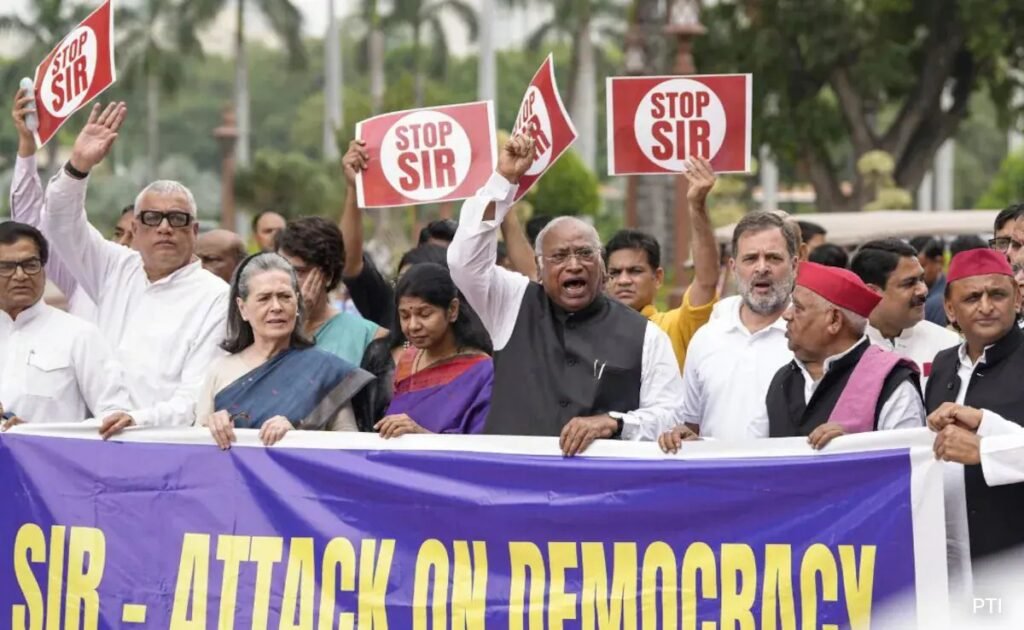 नई दिल्ली/अनीशा चौहान/- बिहार में मतदाता सूची के विशेष गहन पुनरीक्षण (SIR) और कथित ‘वोट चोरी’ के आरोपों के खिलाफ सोमवार को राहुल गांधी के नेतृत्व में इंडिया ब्लॉक के सांसदों ने संसद भवन के मकर द्वार से चुनाव आयोग (EC) के दफ्तर तक पैदल मार्च निकाला। विपक्ष का आरोप है कि SIR प्रक्रिया के जरिए मतदाता सूची में हेरफेर कर लगभग 65 लाख मतदाताओं को हटाने की कोशिश हो रही है, जिसे वे लोकतंत्र और संविधान पर सीधा हमला मानते हैं।