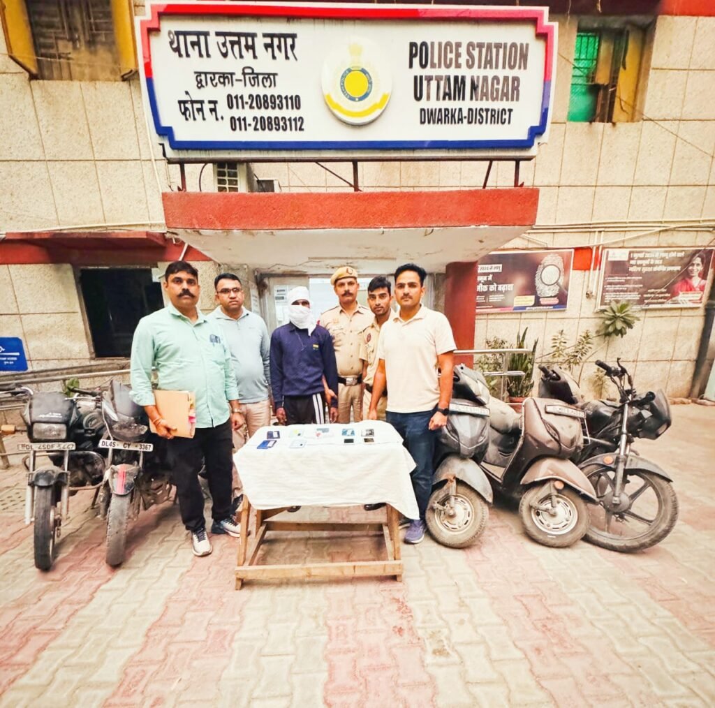 नई दिल्ली/उत्तम नगर/उमा सक्सेना/- उत्तम नगर थाना क्षेत्र में बीट स्टाफ को बड़ी सफलता तब मिली जब पुलिस ने कुख्यात बदमाश और BC (Bad Character) आदिल उर्फ़ काना को गिरफ्तार कर लिया। पुलिस ने उसके कब्जे से एक बटनदार चाकू, 5 चोरी की टू-व्हीलर और 9 मोबाइल फोन बरामद किए।