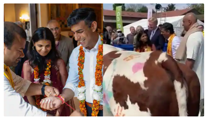 वीडियो की शुरुआत में सुनक पवित्र जल चढ़ाने के बाद हाथ में पीतल का बर्तन लेकर उठते दिखाई दे रहे हैं। दंपति के पास खड़े पुजारी फिर उन्हें अगले अनुष्ठान के बारे में बताते हैं। वीडियो में आगे देख सकते हैं कि सुनक और उनकी पत्नी दोनों गाय की आरती करते हुए दिखाई दे रहे हैं। गाय को रंगों और हाथों के निशान से सजाया गया है।