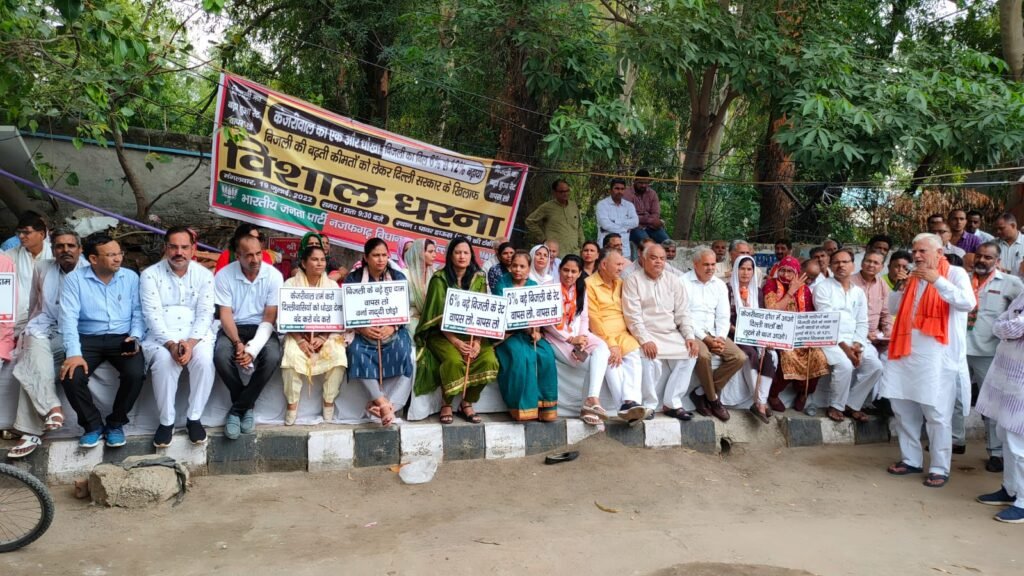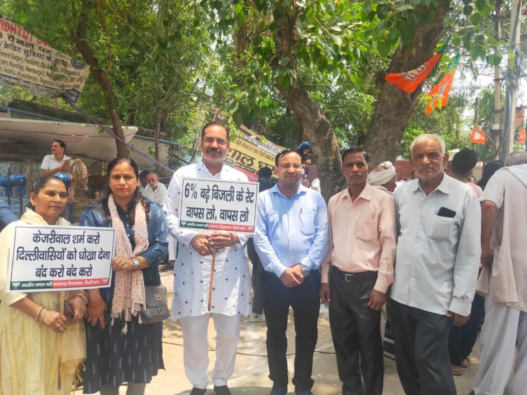 नजफगढ़/- सोमवार को भारतीय जनता पार्टी ने पूरी दिल्ली में बिजली दरों में दोगुनी वृद्धि को लेकर मंडल स्तर पर अपना विरोध दर्ज किया। इस मौके पर नजफगढ़ जिला भाजपा नेताओं के नेतृत्व में कार्यकर्ताओं ने बिजली दफ्तर के सामने धरना प्रदर्शन कर अपना विरोध जताया और केजरीवाल शर्म करो बिन पानी के डूब मरो के नारे लगाये।