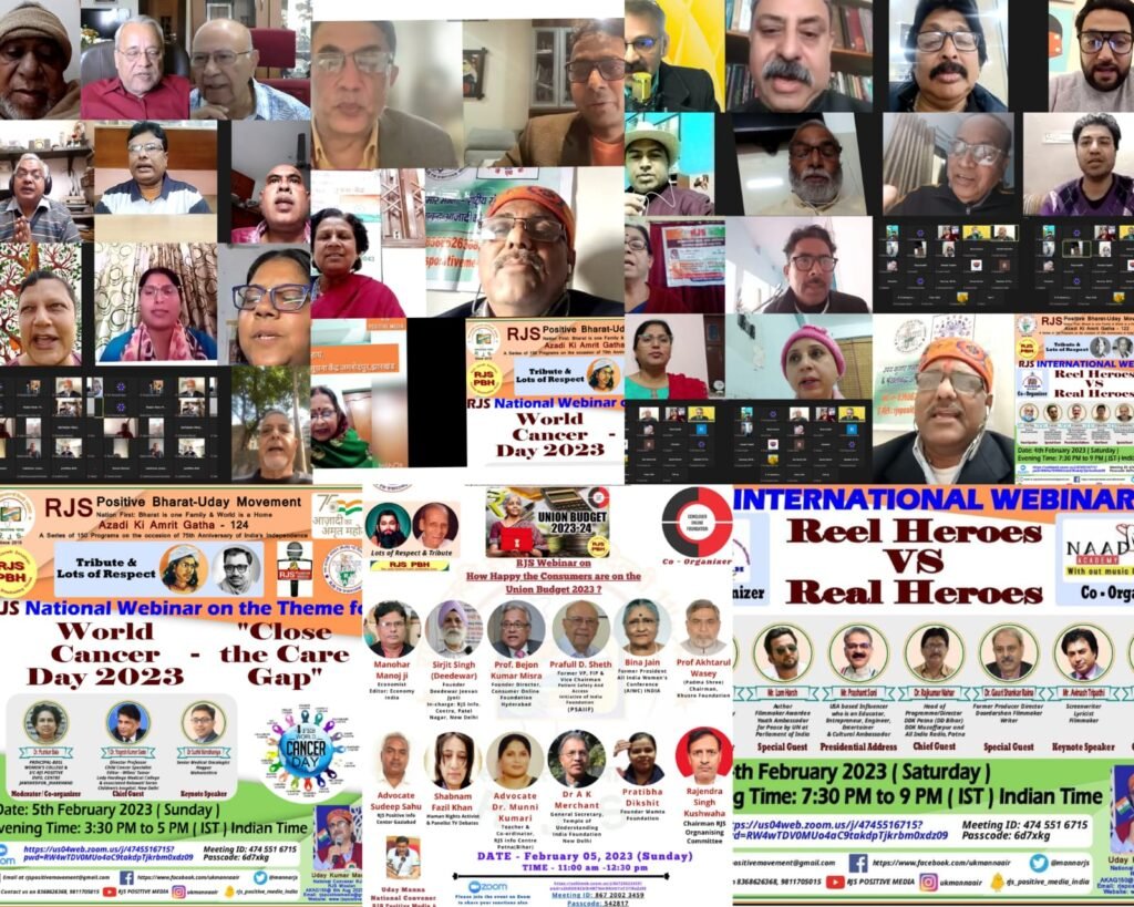 आरजेएस राष्ट्रीय संयोजक उदय कुमार मन्ना ने बताया कि  दूरदर्शन और ऑल इंडिया रेडियो,पटना के निदेशक और कार्यक्रम प्रमुख डा राजकुमार नाहर, दिल्ली दूरदर्शन के पूर्व निदेशक निर्माता डा गौरीशंकर रैना, फिल्म निर्माता लोम हर्ष और अविनाश त्रिपाठी, रंग निर्देशक रवि तनेजा और गायक कलाकार सुरेंद्र आनंद आदि ने सकारात्मक संवाद में भाग लिया। अमेरिका से जुड़े गायक कलाकार प्रशांत सोनी ने अपने गायन से सबका मन मोह लिया। इसमें कर्नल गुरु बक्स सिंह ढिल्लो, भीमसेन जोशी,बिरजू महाराज और जगजीत सिंह की स्मृति को नमन् किया गया। वहीं रविवार 5 फरवरी की सुबह कंज्यूमर ऑनलाइन फाउंडेशन के सहयोग से केंद्रीय बजट2023 पर उपभोक्ताओं की प्रतिक्रिया विषय पर आजादी की अमृत गाथा का 123वां संस्करण में माघ पूर्णिमा पर संत गुरु रविदास और कवि गीतकार प्रदीप को याद किया गया।