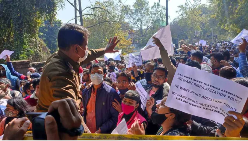 -पक्की नौकरी और सैलरी बढ़ाए जाने की मांग को लेकर अड़े गेस्ट टीचर, पुलिस ने अस्थाई रूप से लिया हिरासत में