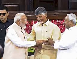 नई दिल्ली/शिव कुमार यादव/- एनडीए संसदीय दल की बैठक में बिहार के मुख्यमंत्री और जनता दल यूनाइटेड (जदयू) के प्रमुख नीतीश कुमार ने प्रधानमंत्री नरेंद्र मोदी की जमकर तारीफ की। नीतीश ने नरेंद्र मोदी के नाम के प्रस्ताव का अनुमोदन करते हुए कहा,’’खुशी की बात है कि 10 साल से ये प्रधानमंत्री हैं और फिर प्रधानमंत्री होने जा रहे हैं। उन्होंने देश की सेवा की है। अब पूरा भरोसा है कि जो भी बचा है, अगली बार ये सब पूरा कर देंगे। जो भी हर राज्य का है, वह भी। हम लोग पूरे तौर पर सब दिन इनके साथ रहेंगे। पूरे तौर पर जो भी कुछ करेंगे, जिस तरह से ये करेंगे, सब अच्छा ही करेंगे।’’