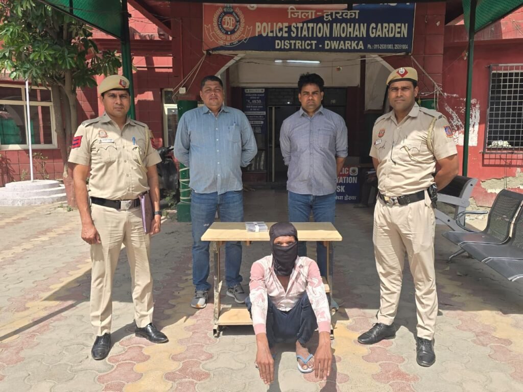 नई दिल्ली/उमा सक्सेना/- राजधानी दिल्ली के द्वारका जिले के मोहन गार्डन थाना क्षेत्र में पुलिस को एक बड़ी सफलता हाथ लगी है। नियमित गश्त के दौरान पुलिस टीम ने एक संदिग्ध व्यक्ति को पकड़ा, जिसके पास से बटन दबाते ही खुलने वाला धारदार चाकू बरामद हुआ। यह कार्रवाई 15 मार्च की रात करीब 9:20 बजे 55 फुटा रोड, पोस्वाल चौक के पास की गई, जहां आरोपी पुलिस को देखकर भागने की कोशिश कर रहा था, लेकिन सतर्क पुलिसकर्मियों ने पीछा कर उसे दबोच लिया।