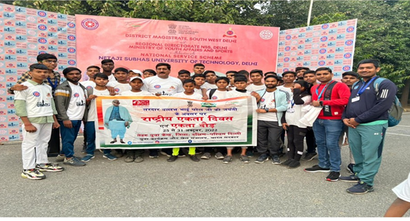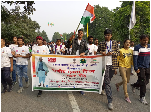 नेहरू युवा केंद्र संगठन पूरे देश भर में इस दौरान 75000 एकता दौड़ का आयोजन करेगा। प्रत्येक ज़िले को 121 एकता दौड़ का आयोजन किया किया गया है। श्री सुरेन्द्र बोकन, एपीए ने बताया कि इसी कड़ी में नेहरू युवा केंद्र, ज़िला दक्षिण-पश्चिम दिल्ली, जिला प्रशासन व शिक्षा विभाग के साथ मिलकर 120 दौड़ो का आयोजन किया। आज मेगा एकता दौड़ का आयोजन ज़िला प्रशासन, नेहरू युवा केंद्र, ज़िला दक्षिण-पश्चिम दिल्ली, एन.सी.सी, एन.एस.एस व शिक्षा विभाग के साथ मिलकर नेताजी सुभाष यूनिवर्सिटी ऑफ टेक्नॉलजी, द्वारका सेक्टर-3 से लेकर वेगास माल द्वारका तक आयोजित किया, जिसमें करीब 1200 प्रतिभागियों ने हिस्सा लिया। आज के कार्यक्रम के मुख्य अतिथि श्री हेमंत कुमार, आईएएस, जिला मैजिस्ट्रैट, ज़िला दक्षिण-पश्चिम दिल्ली, विशिष्ट अतिथि में श्री जंगीलोंग, क्षेत्रीय निदेशक, एन.एस.एस, श्री जे.पी सैनी, उपकुलपति, प्रोफेसर विजेंद्र सिंह, डीन स्टूडेंट वेल्फेर एनएसयूटी और डॉ० प्रवीण सरोहा, एन.एस.एस प्रभारी उपस्थित रहे।
