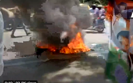 मीडिया रिपोर्ट्स के अनुसार, पुलिस कार्रवाई से नाराज कांग्रेस कार्यकर्ताओं ने म्क् कार्यालय से कुछ दूरी पर ही टायरों में आग लगा दी थी। घटना की खबर लगते ही दिल्ली पुलिस के जवान मौके पर पहुंचे और आग बुझाने की कोशिशें जारी हैं। खास बात है कि जांच एजेंसी नेशनल हेराल्ड अखबार से जुडे़ मनी लॉन्ड्रिंग मामले में पूछताछ के दौरान तीन दिनों से हंगामा जारी है।