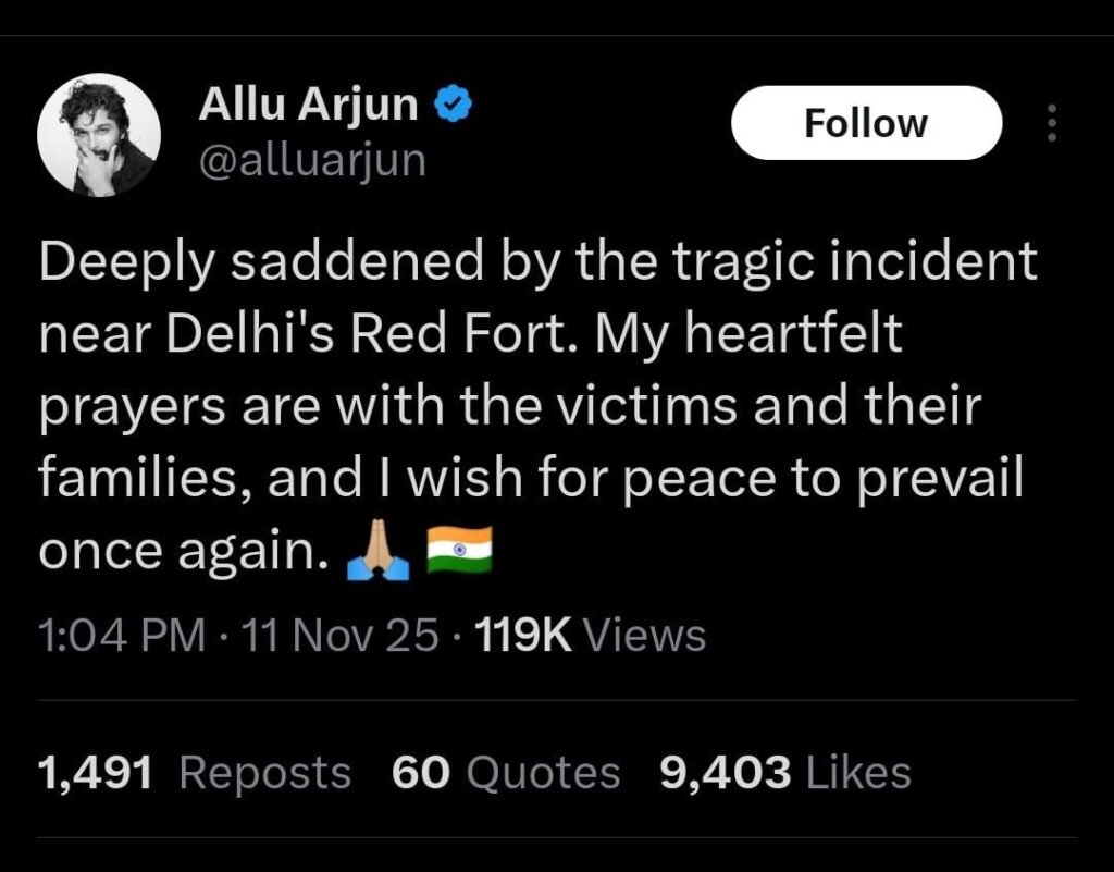 साउथ सुपरस्टार अल्लू अर्जुन ने एक्स (Twitter) पर पोस्ट करते हुए कहा —