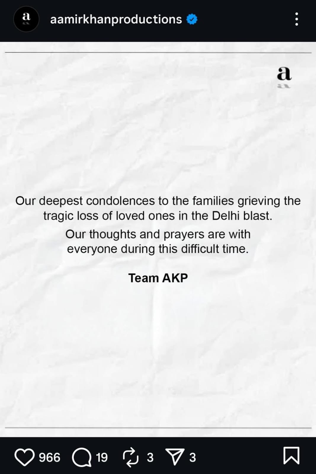 आमिर खान प्रोडक्शन हाउस का बयान — “हम इस मुश्किल घड़ी में पीड़ितों के साथ हैं”