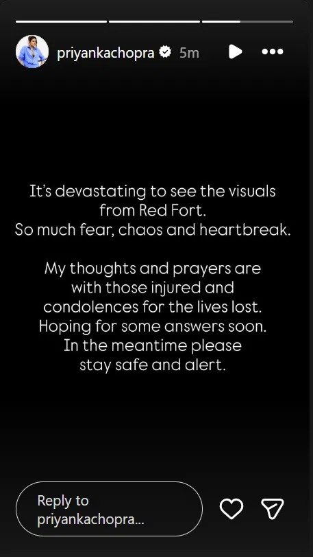 ग्लोबल स्टार प्रियंका चोपड़ा ने भी इस घटना पर गहरा दुख जताया। उन्होंने अपनी इंस्टाग्राम स्टोरी पर लिखा —