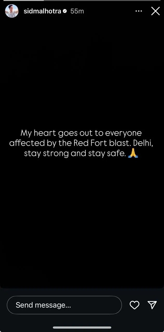 सिद्धार्थ मल्होत्रा बोले — “दिल्ली, मजबूत रहो और सुरक्षित रहो”