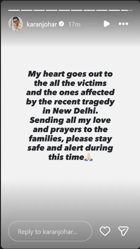 फिल्ममेकर करण जौहर ने अपनी इंस्टाग्राम स्टोरी में लिखा —