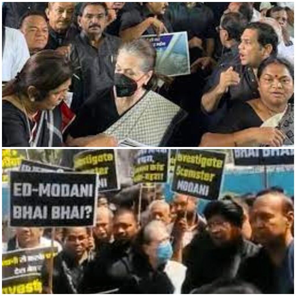 कांग्रेस और विपक्ष के कुछ सांसदों ने सोमवार को काले कपड़े पहनकर राहुल की सदस्यता जाने और अदाणी मुद्दे पर प्रदर्शन किया। इस दौरान कांग्रेस अध्यक्ष मल्लिकार्जुन खरगे काले कुर्ते में और यूपीए चेयरपर्सन सोनिया गांधी भी इसी वेशभूषा में दिखीं। वहीं राहुल गांधी की लोकसभा सदस्यता जाने के मुद्दे को लेकर विपक्षी दलों के सांसदों ने काले कपड़े पहनकर संसद परिसर में महात्मा गांधी प्रतिमा के पास विरोध प्रदर्शन किया।