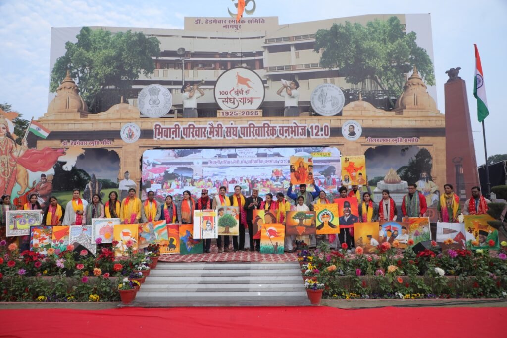 नई दिल्ली/उमा सक्सेना/- करनाल बाइपास स्थित गोपीनाथ सावित्री देवी फार्म हाउस में आयोजित भिवानी परिवार मैत्री संघ (बीपीएमएस) के वार्षिक ‘वनभोज-12’ कार्यक्रम ने सामाजिक समरसता, सांस्कृतिक विरासत और राष्ट्रप्रेम की अनूठी मिसाल पेश की। हजारों परिवारों की भागीदारी से यह आयोजन किसी लघु भारत की झलक जैसा प्रतीत हुआ, जहां हर आयु वर्ग के लोगों ने कला, अध्यात्म, परंपरा और मनोरंजन के रंगों में डूबकर दिनभर उत्सव का आनंद लिया। कार्यक्रम की थीम ‘संघ की सौ वर्ष की यात्रा’ रही, जिसमें संगठन के मूल्यों और विचारधारा को जनमानस तक पहुंचाने का संदेश दिया गया।