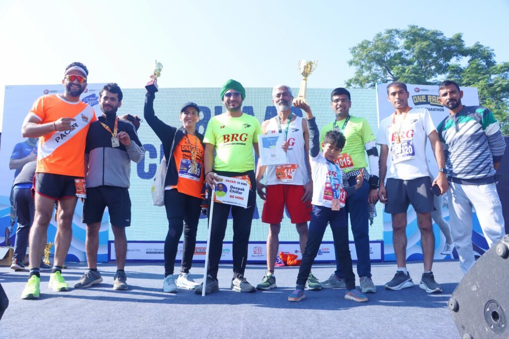 वन रेस ह्यूमन रेस हाफ मैराथन मे दौड़े बी आर जी के धावक, जीते इनाम