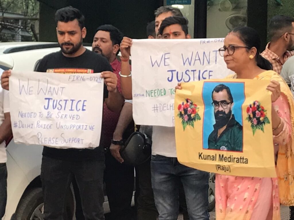 द्वारका/नई दिल्ली/- बीते 10 अक्टुबर की रात को उत्तमनगर क्षेत्र में अज्ञात कार सवारों ने कुनाल मेंहदीरत्ता नाम के व्यक्ति को बुरी तरह से कुचल दिया था बाद में ईलाज के दौरान उसकी मौत हो गई थी। लेकिन इस मामले में सबसे बड़ी बात यह बनी हुई है कि घटना के 20 दिन बाद भी हत्यारें खुले घूम रहे है और पुलिस की लापरवाही का आलम यह है कि वह जांच के नाम पर सिर्फ टाईम पास कर रही है। जबकि जो काम पुलिस को करना चाहिए था वह काम मृतक के परिजनों ने कर सीसीटीवी की फुटेज तक पुलिस को उपलब्ध करा दी है लेकिन फिर भी पुलिस आरोपियों को नही पकड़ पा रही है या पकड़ना नही चाहती है। मृतक के परिजन पुलिस की इस लापरवाही के विरोध में 27 अक्टुबर से लगातार उत्तमनगर व बिंदापुर थानों के सामने भारी संख्या में इक्ट्ठे होकर अपना विरोध प्रदर्शन कर रहे है लेकिन फिर भी पुलिस टस से मस नही हो रही है।
