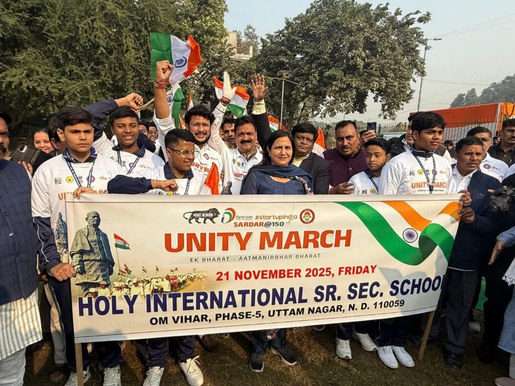 नई दिल्ली/उमा सक्सेना/- राजधानी दिल्ली के विकासपुरी इलाके में आज सरदार वल्लभभाई पटेल की 150वीं जयंती के उपलक्ष्य में ‘माय भारत’ अभियान के तहत एक प्रभावी जिला स्तरीय एकता मार्च निकाला गया। प्रधानमंत्री नरेंद्र मोदी की प्रेरणा से आयोजित इस कार्यक्रम का उद्देश्य युवाओं में राष्ट्रभक्ति, एकजुटता और आत्मनिर्भरता की भावना को सशक्त करना रहा।